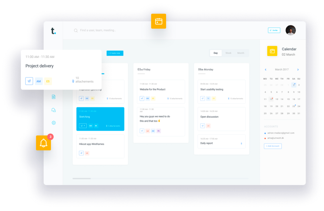 Project discussions, important documents, free food announcements: they all live tidily in Team. With your team and information in one easily searchable place, collaborating online is as easy as collaborating in person.
